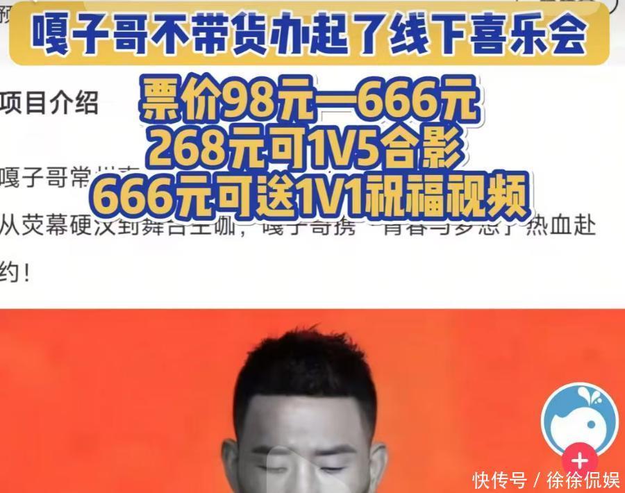 最扯的是,他带不了货又想出来了新的“割韭菜”的手段,居然要举办线下“喜乐会”。把收费的标准是定的明明白白的,票价元元不等。同元的门票可以和他进行合影。